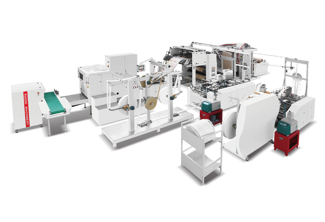 Fully automatic square bottom paper bag machine is designed for the production of paper bags with both twisted and flat handles. It is suitable for mass production of shopping bags in industries such as food and clothing. The one-line process consists of handles making from paper rolls and rope delivery of handles to paste unit pre-cutting of paper on position of rope patch position gluing handle pasting and paper bag making. The paper bag making process consists of side gluing tube forming cutting creasing bottom gluing bottom forming and bag delivery. This machine adopts German imported high-speed motion controller (CPU) which controls the operation of servo through high-speed bus to ensure stable movement and smooth motion curve. It is the automatic square bottom paper bag equipment with handles inline preferred by the majority of printing and packaging manufacturers.